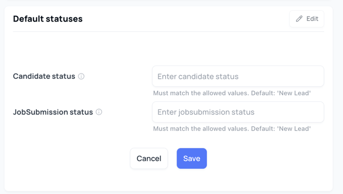 Je kunt bepalen welke status een Candidate (Kandidaat) en een JobSubmission (Sollicitatie) krijgt bij binnenkomst.