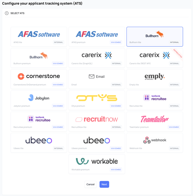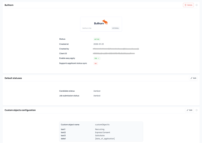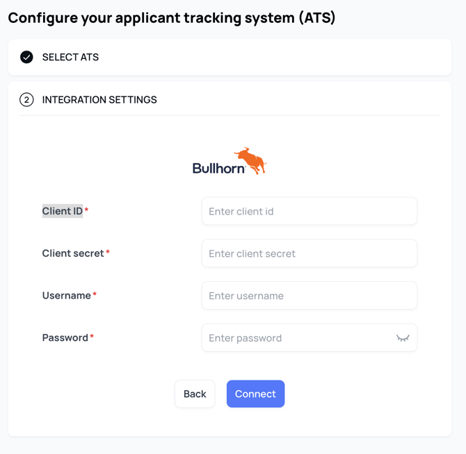 - Ga naar je Bullhorn-verbinding in Settings → ATS.
