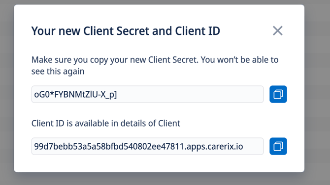 Client Secret: Plak hier je Client Secret uit Carerix.
