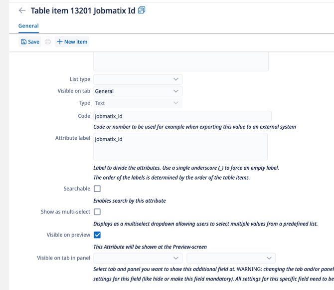 Klik op Opslaan (Save) om je nieuwe attribuut aan te maken. Het attribuut is nu klaar om gegevens van Jobmatix te ontvangen!
