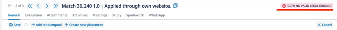 De foutmelding "GDPR NO VALID LEGAL GROUND" verschijnt niet meer op kandidaatprofielen